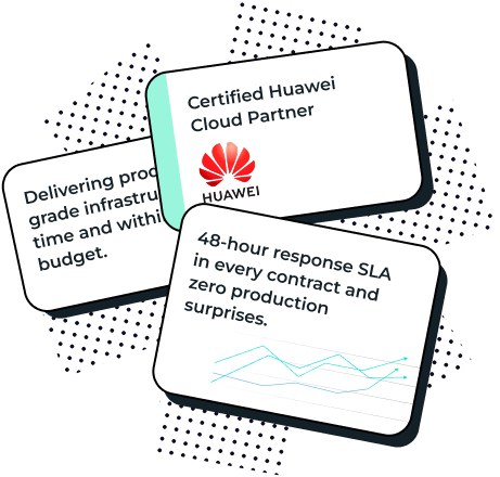 • We’re the Huawei Cloud partner that ships production-grade infrastructure on time and on budget. Certified engineers in Mumbai and Bangalore, 24×7 NOC, and a 48-hour response SLA written into every contract.